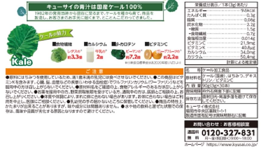 - ケール青汁はちみつ入り 90g(3g×30本)