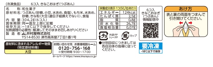 [16袋]井村屋 きなこおはぎ 304.2g(6個入) | 北海道十勝産の小豆、もち米、砂糖や国産きなこなどのシンプルな原料で作ったきなこおはぎです。