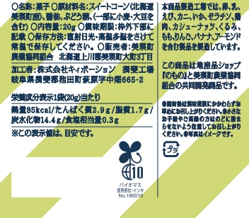 美瑛町で育てられた甘みたっぷりの「とうきび」にしょうゆをあわせてフリーズドライにした「焼きとうきび」味のスナックです。かみしめるたびに、さくさく甘く、しょうゆがふわり。北海道の旬の味が広がります。