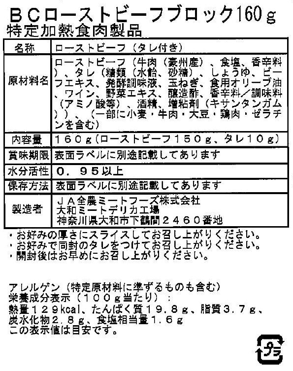 [20袋]JA全農ミートフーズ 赤身がおいしいローストビーフブロック 160g | 赤身の旨みを引き出すシンプルな味付け