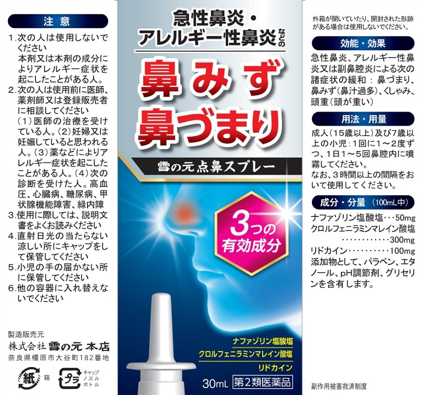 - 【第2類医薬品】雪の元点鼻スプレー 30mL