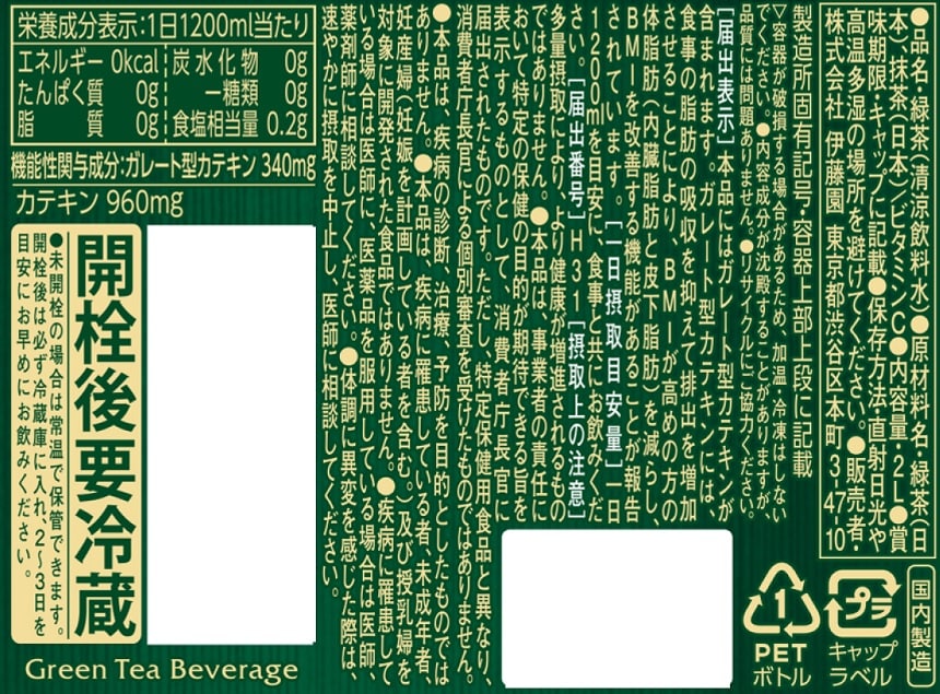 ■届出表示:本品にはガレート型カテキンが含まれます。ガレート型カテキンには、食事の脂肪の吸収を抑えて排出を増加させることにより、BMIが高めの方の体脂肪(内臓脂肪と皮下脂肪)を減らし、BMIを改善する機能があることが報告されています。