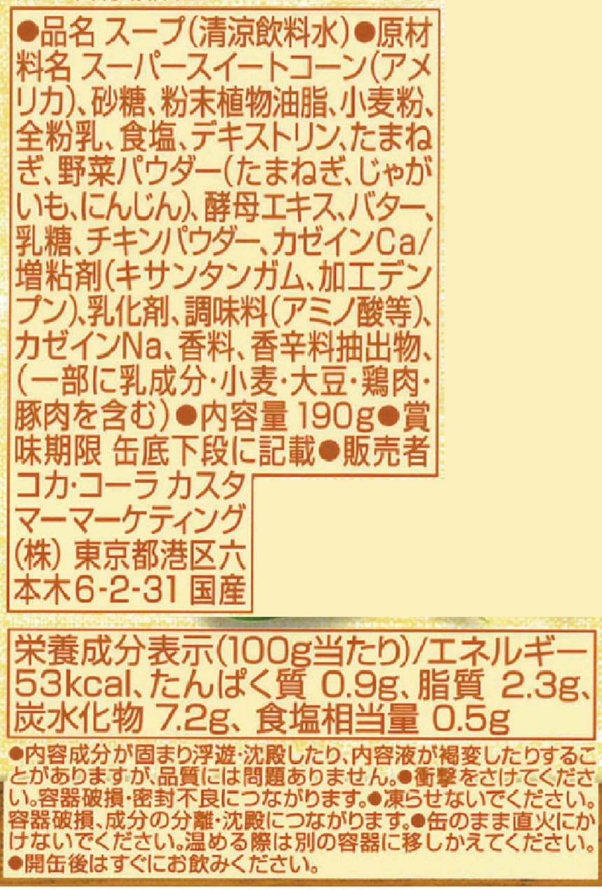 [60本]コカ・コーラボトラーズジャパン GO:GOOD ゴクっ!とコーンポタージュ 缶 190g | とうもろこし粒がたっぷり入った「食べるコーンポタージュ」