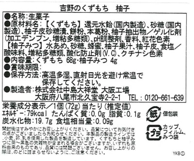 [30個]中島大祥堂 吉野のくずもち 柚子 72g | もっちり食感のくずもち。