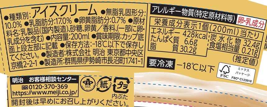 ※賞味期限の記載のないアイスクリーム類は、-18度以下での冷凍保存の状態では、品質の劣化が極めて小さい食品ということで、賞味期限の設定がされていない商品でございます。