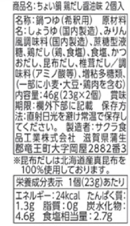 - ちょい鍋 鶏だし醤油味 2個入×10袋