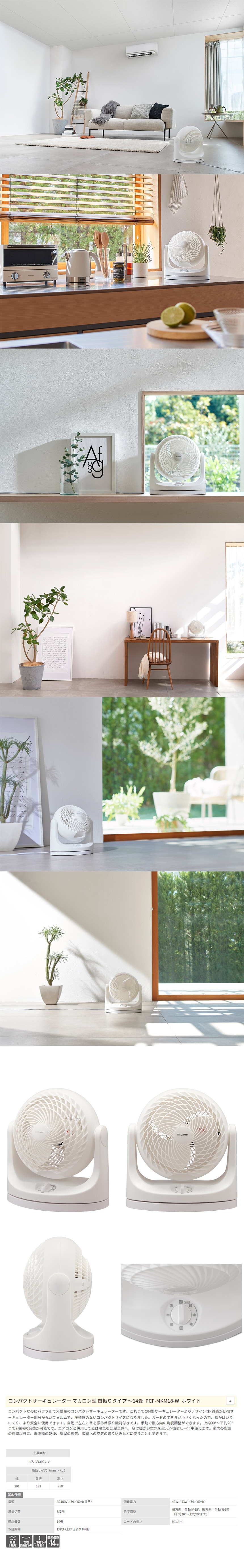 - [ホワイト] アイリスオーヤマ/コンパクトサーキュレーター マカロン型 (首振りタイプ ~14畳)/PCF-MKM18-W