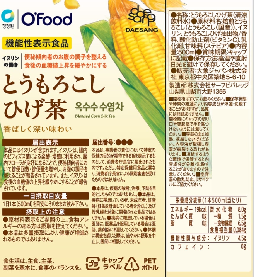 - 【機能性表示食品】OFood とうもろこしひげ茶 500ml