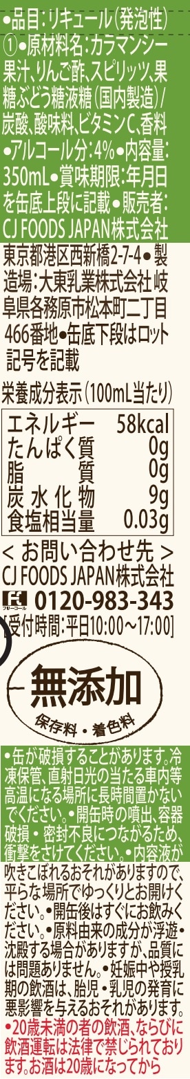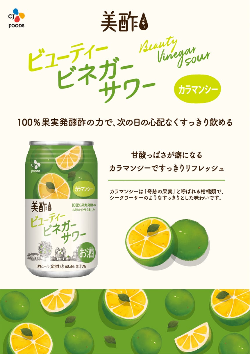 [48本]CJ FOODS JAPAN 美酢ビューティービネガーサワー カラマンシー 350mL | 100%果実発酵酢のフルーティーでまろやかなサワー