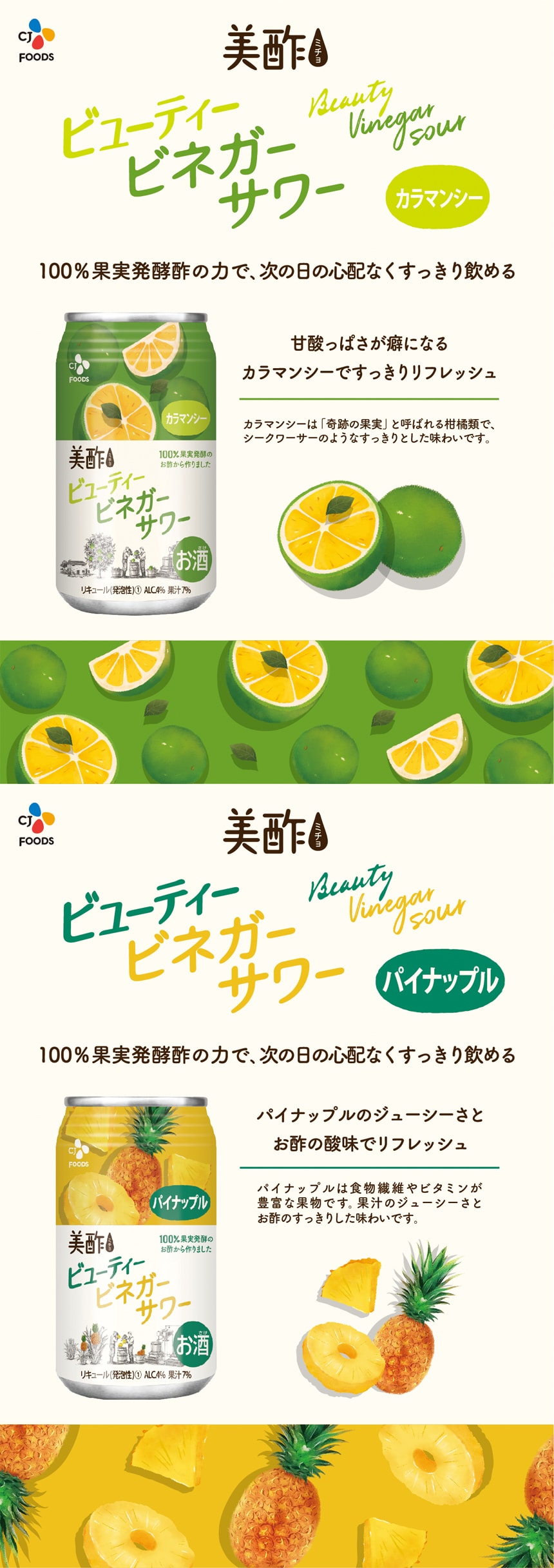 [2種計48本]CJ FOODS JAPAN 美酢ビューティービネガーサワー (カラマンシー 350mL/パイナップル 350mL) | 100%果実発酵酢のフルーティーでまろやかなサワー
