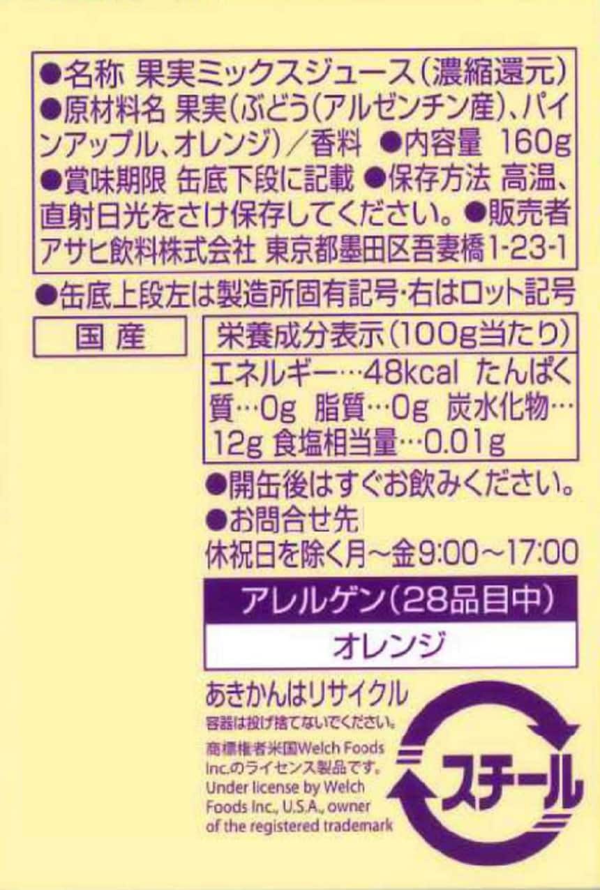 [90本]アサヒ飲料 ウェルチ パインアップルブレンド100 160g | 甘ずっぱく華やかな香りのパインアップルにオレンジと白ぶどうをブレンド。
