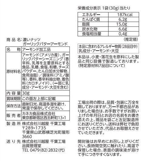 - 濃いナッツ ガーリックバターアーモンド 30g