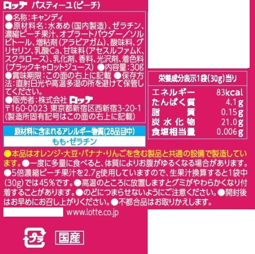 [40袋]ロッテ パスティーユ<ピーチ> 30g | クセになるこだわりの硬さ。ハードタイプのピーチグミです。