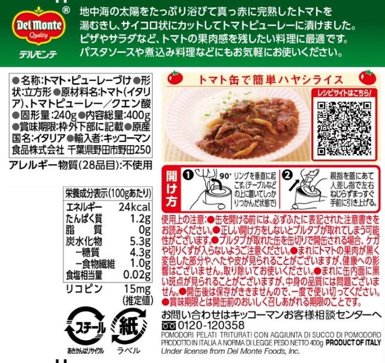 [24個]キッコーマン食品 デルモンテ 完熟カットトマト 400g | 果肉感を活かしたいトマト料理に!
