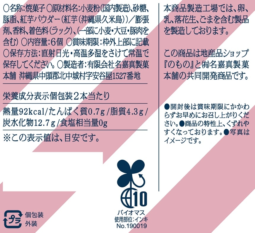 - 沖縄のサーターアンダーギー黒糖味 45g / 沖縄の紅芋ちんすこう 6個入