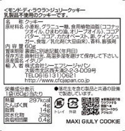 [12個]シーエフシージャパン モンドディラウラ MAXI ジュリークッキー 60g | 食べ切りサイズ。口どけが良くシンプルな味わいのチョコバニラ味です。
