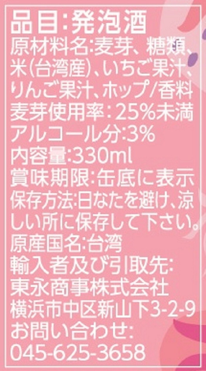 [48本]東永商事 台湾ストロベリービール 330ml | いちごのフルーティーは香りとほどよい甘さの味わい