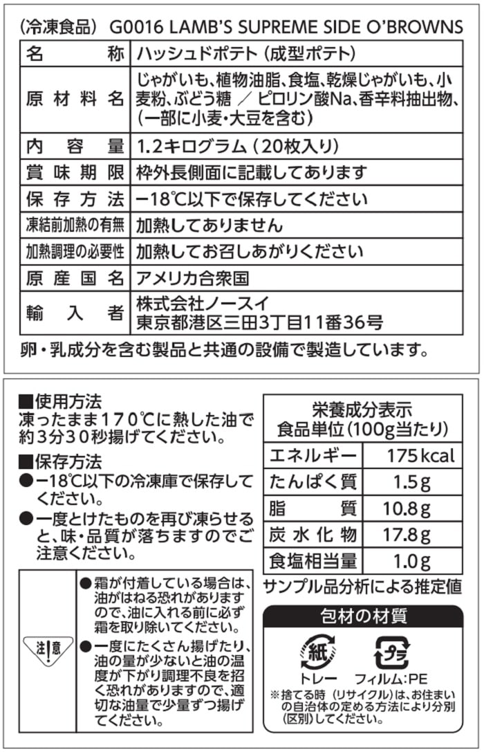 - ハッシュドポテト 1.2キログラム(20枚入)