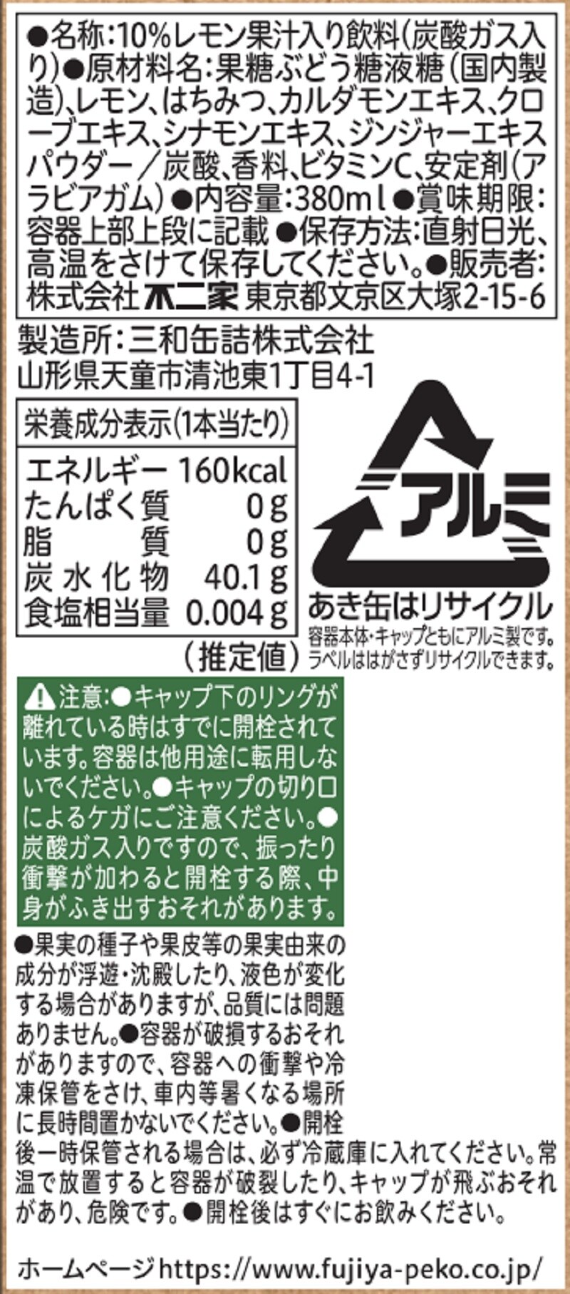 - 不二家クラフトレモンスカッシュ 380ml