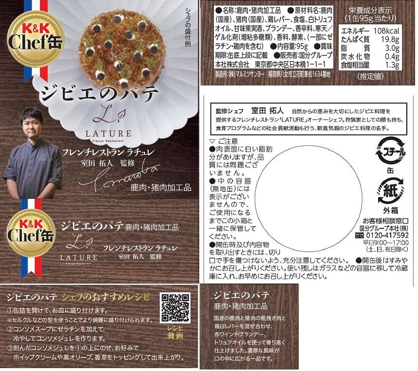 - K&K Chef缶 (ジビエのパテ 95g缶 / 猪のシャスール風 105g缶)