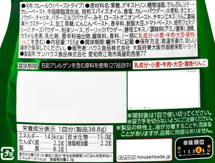 ・きわだちカレー中辛 155g×3個(賞味期限:2023/12/31)