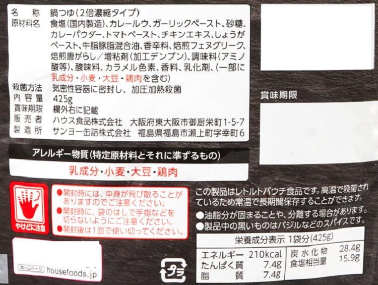 ・玉ねぎとトマトとけ込むカレー鍋 425g×3個(賞味期限:2024/02/29)