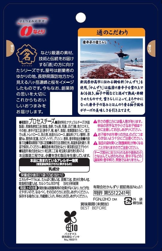 - おつまみ通の方に食べていただきたい かんずり仕立て チーズ 33g