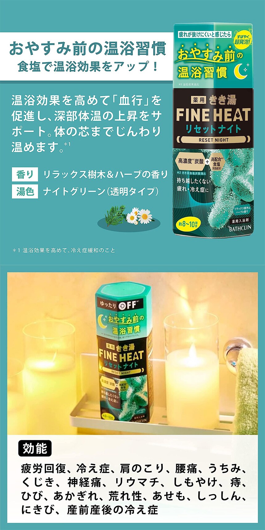 温浴効果を高めて「芯」まで温める。疲れ、冷え性に。
