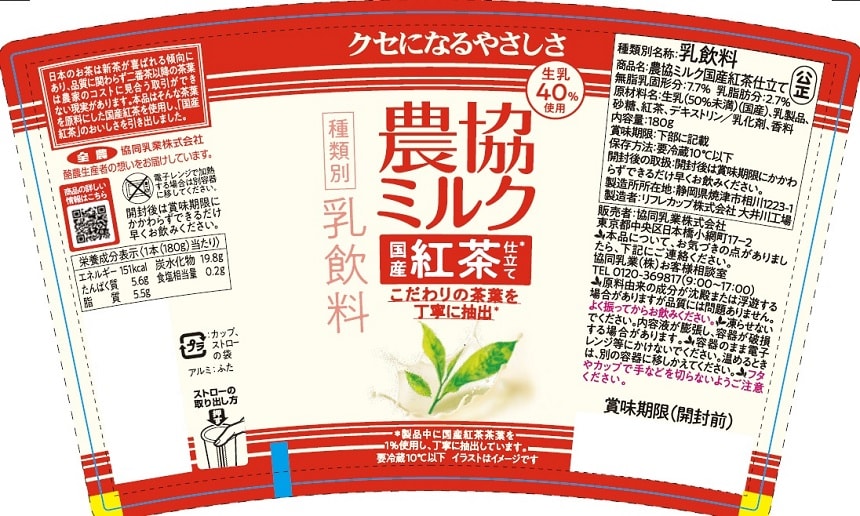 - 農協ミルク 国産紅茶仕立て 180g