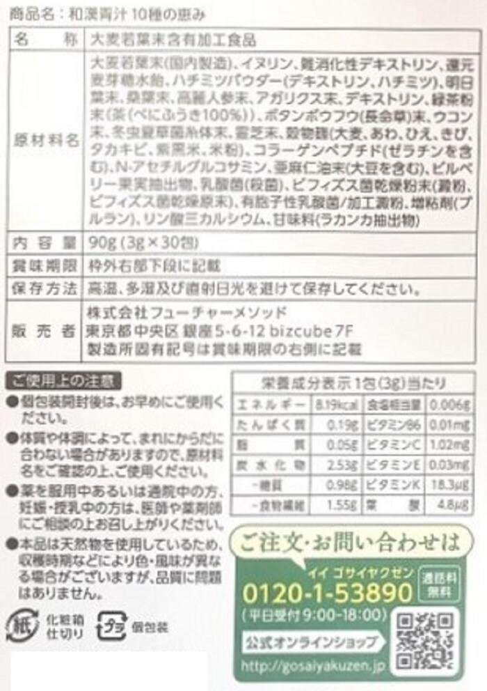 [計120包]フューチャーメソッド 和漢青汁10種の恵み 90g(3g×30包入)×4箱 | 専門医監修&受賞歴有!青汁+乳酸菌+和漢パワーで、女性の元気・快調・美容をサポートする高級青汁。