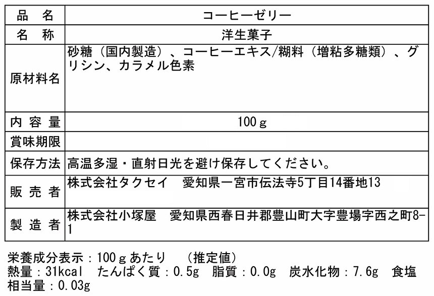 - コーヒーゼリー 100g