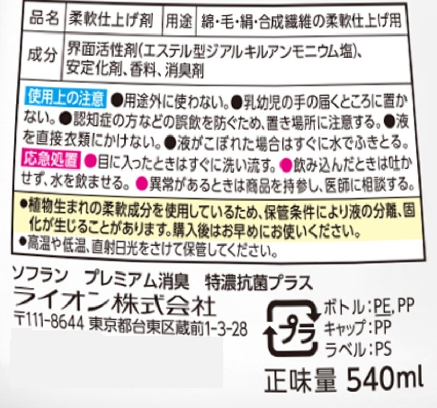 - ・ソフラン プレミアム消臭 特濃抗菌 リフレッシュサボンの香り 本体 540ml×8個