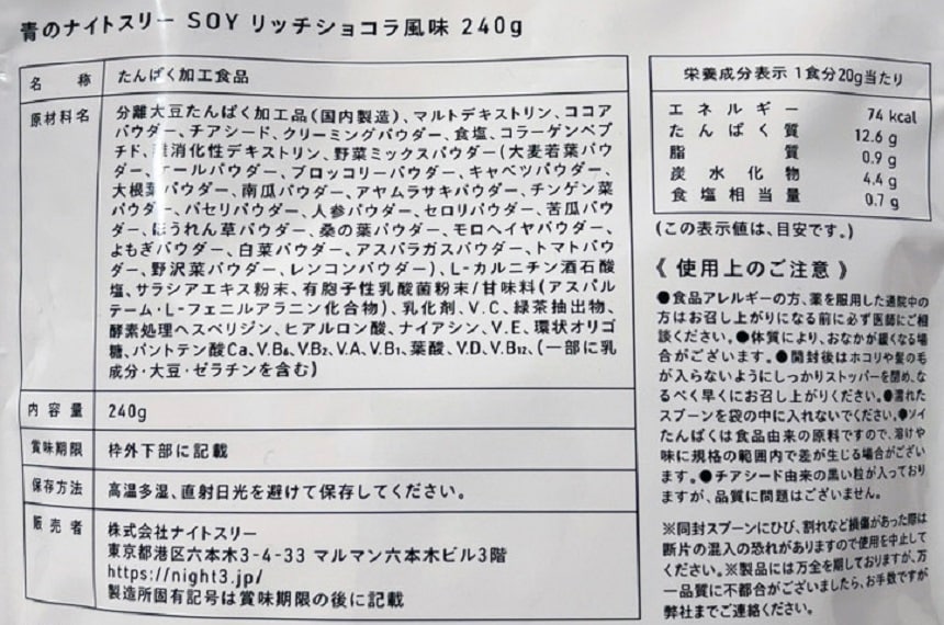 - ・青のナイトスリー SOY リッチショコラ味 240g×12個