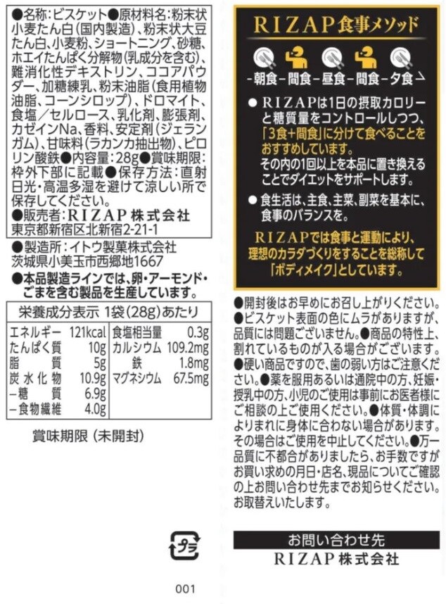 [2種計40個]RIZAP ダイエットサポートビスケット バニラ 28g/ココア 28g | 1口おやつでかしこく手軽にたんぱく質チャージ。