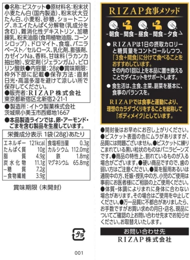 - ・ダイエットサポートビスケット バニラ 28g×20個(賞味期限:2023/10/03)