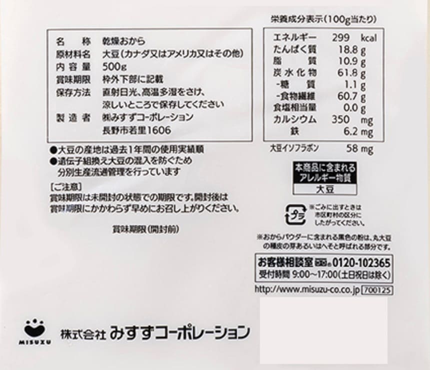 【WEB限定】みすずコーポレーション おからパウダー 微粉末 500g×4個 | 粒子の細かい「微粉タイプ」の(お徳用おからパウダー〉です。