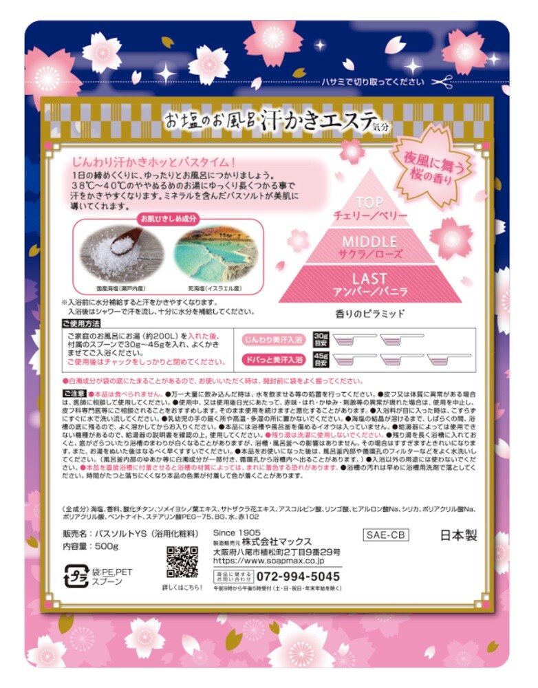 [18個]マックス 汗かきエステ気分 夜桜の香り 500g | ゆったり気分で夜桜にひたるバスソルト