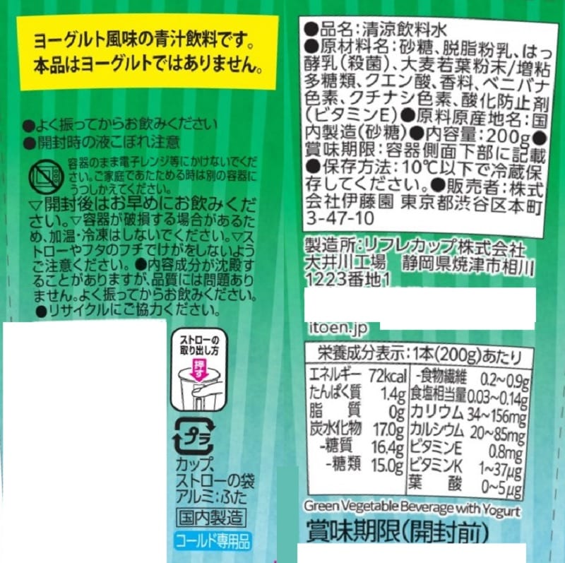 - ・青汁ヨーグルト 200g×12本(賞味期限:2023/09/26)