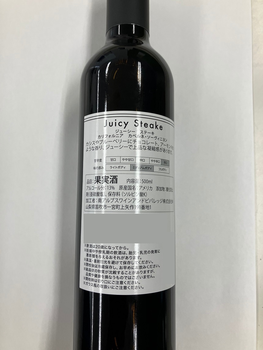 [6本]南アルプスワインアンドビバレッジ ジューシーステーキ カベルネソーヴィニヨン 500ml | 赤い果実系を想わせる華やかな香りの赤ワイン