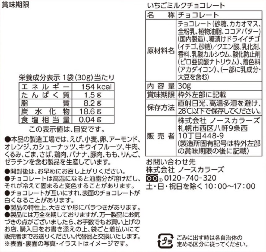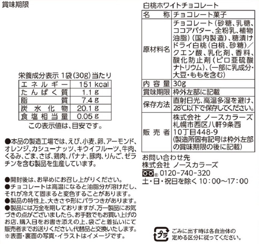 [2種計60個]ノースカラーズ いちごミルクチョコレート 30g/白桃ホワイトチョコレート 30g