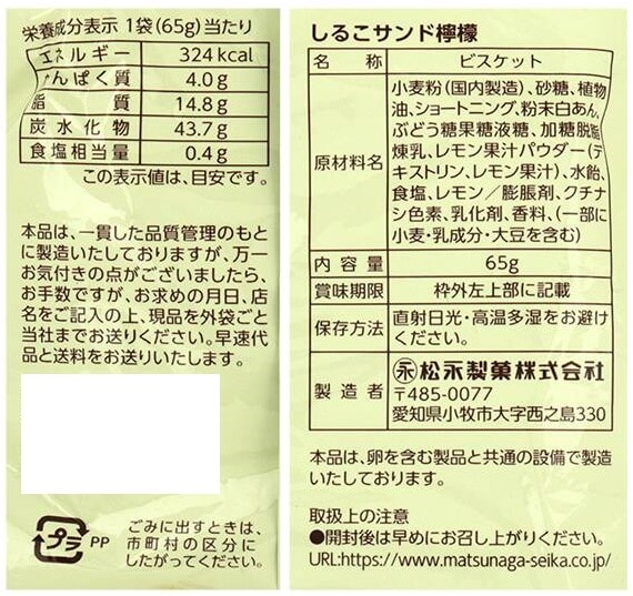 [48袋]松永製菓 しるこサンド 檸檬 65g | 優しい甘さに瀬戸内レモンの香りと爽やかな味わい!