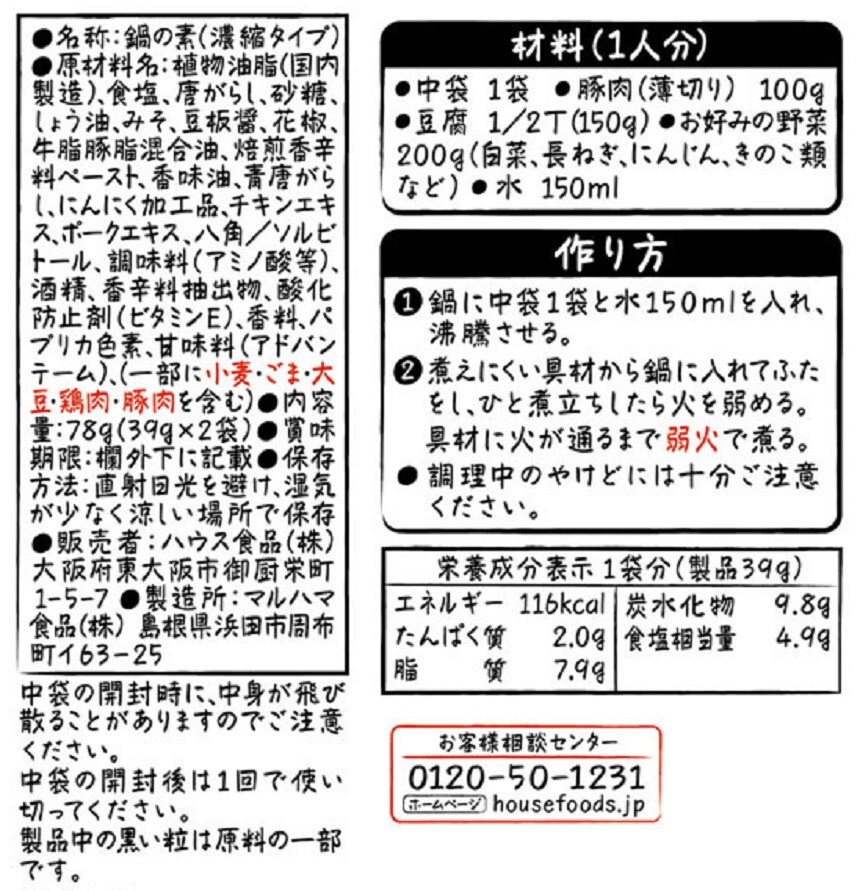 ・豆板醤、豆味噌、ガーリックエキス、醤油で旨さを付与し、更に、真っ赤なオイルを浮かせ、中華料理には欠かせないスターアニス(八角)の風味も効かせた本場四川風の麻辣鍋つゆです。
