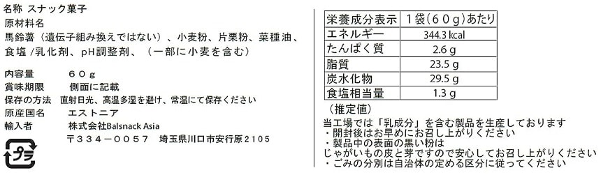 エストニア産の成形型ポテトチップスです。