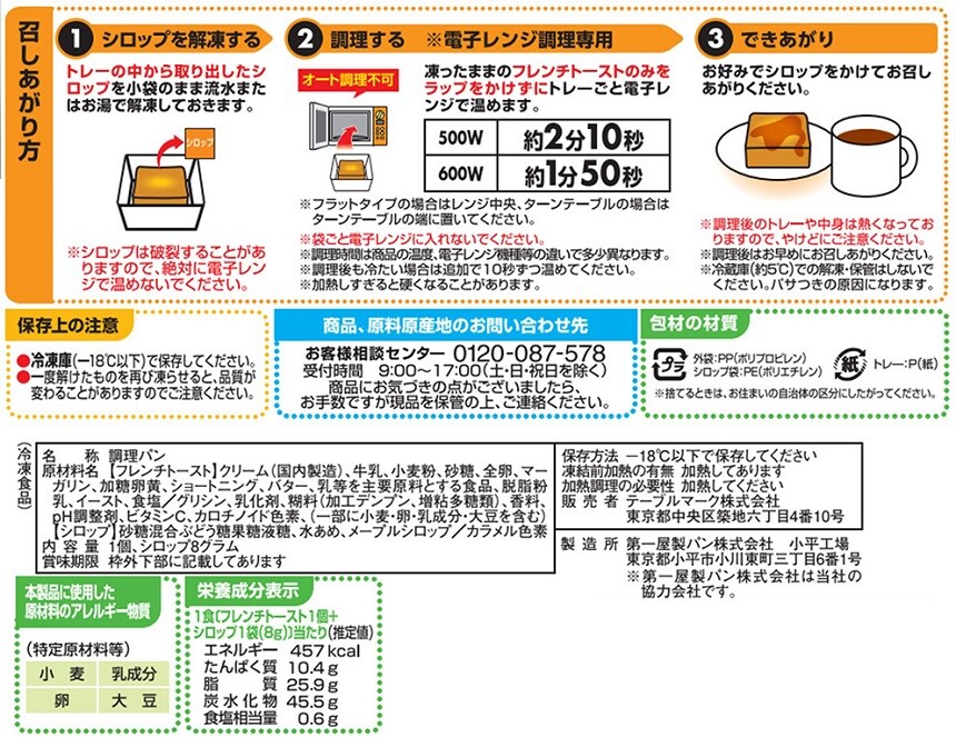 - [冷凍]テーブルマーク ここCafe 厚切りフレンチトースト 1個×12袋
