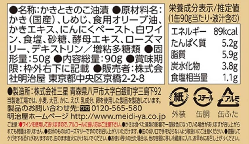 ・おいしい缶詰 広島県産かきときのこのオリーブ油漬(白ワイン&ハーブ風味) 90g×1個