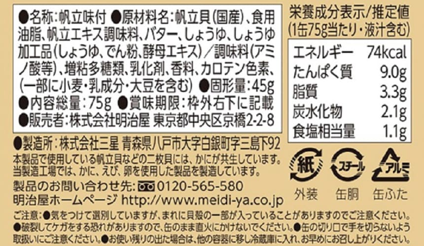 ・おいしい缶詰 国産帆立のバターソース 75g×1個