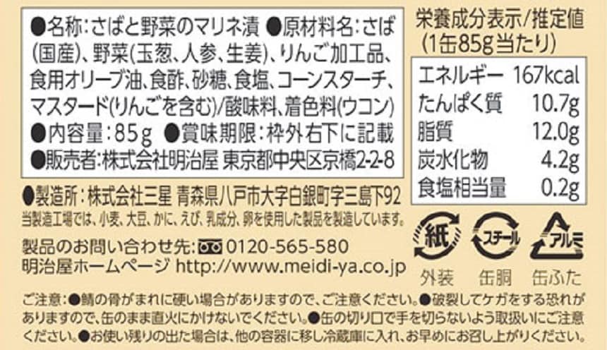 ・おいしい缶詰 国産焼き鯖の香味野菜マリネ 85g×1個