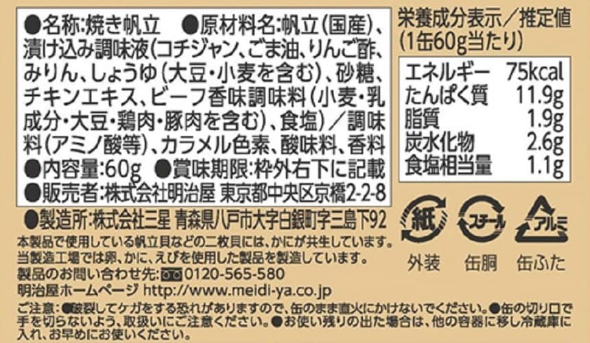 ・おいしい缶詰 国産炙り帆立(醤油味) 60g×1個