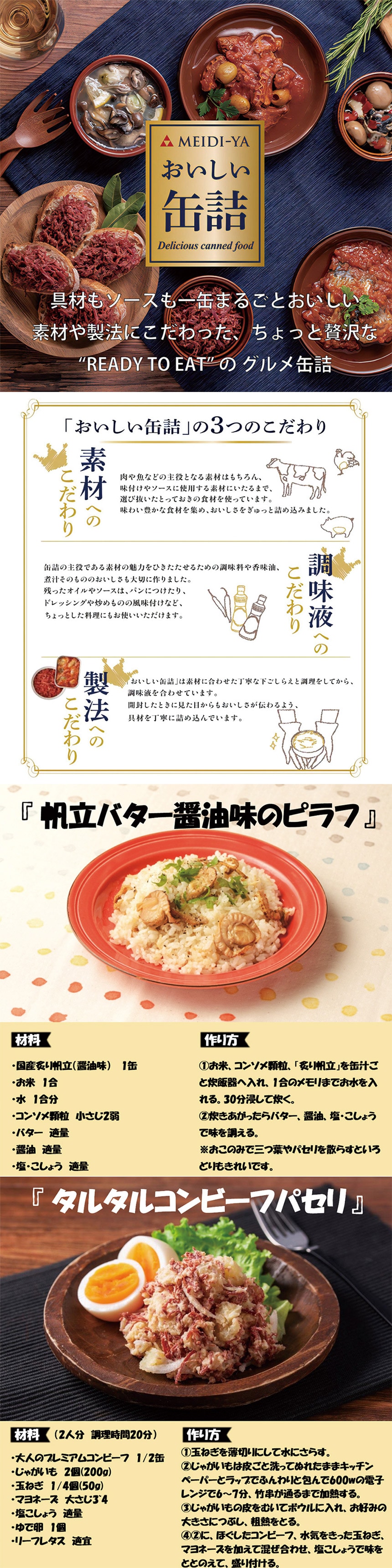 開けるだけで一品料理が楽しめるグルメな缶詰です。