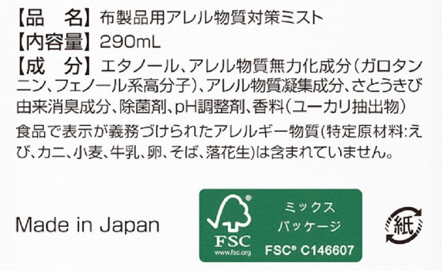 [4本]サンスター アレリア シールドミスト 290ml | アレル物質を包み込んで無力化し、さらに舞い上がりも防止。